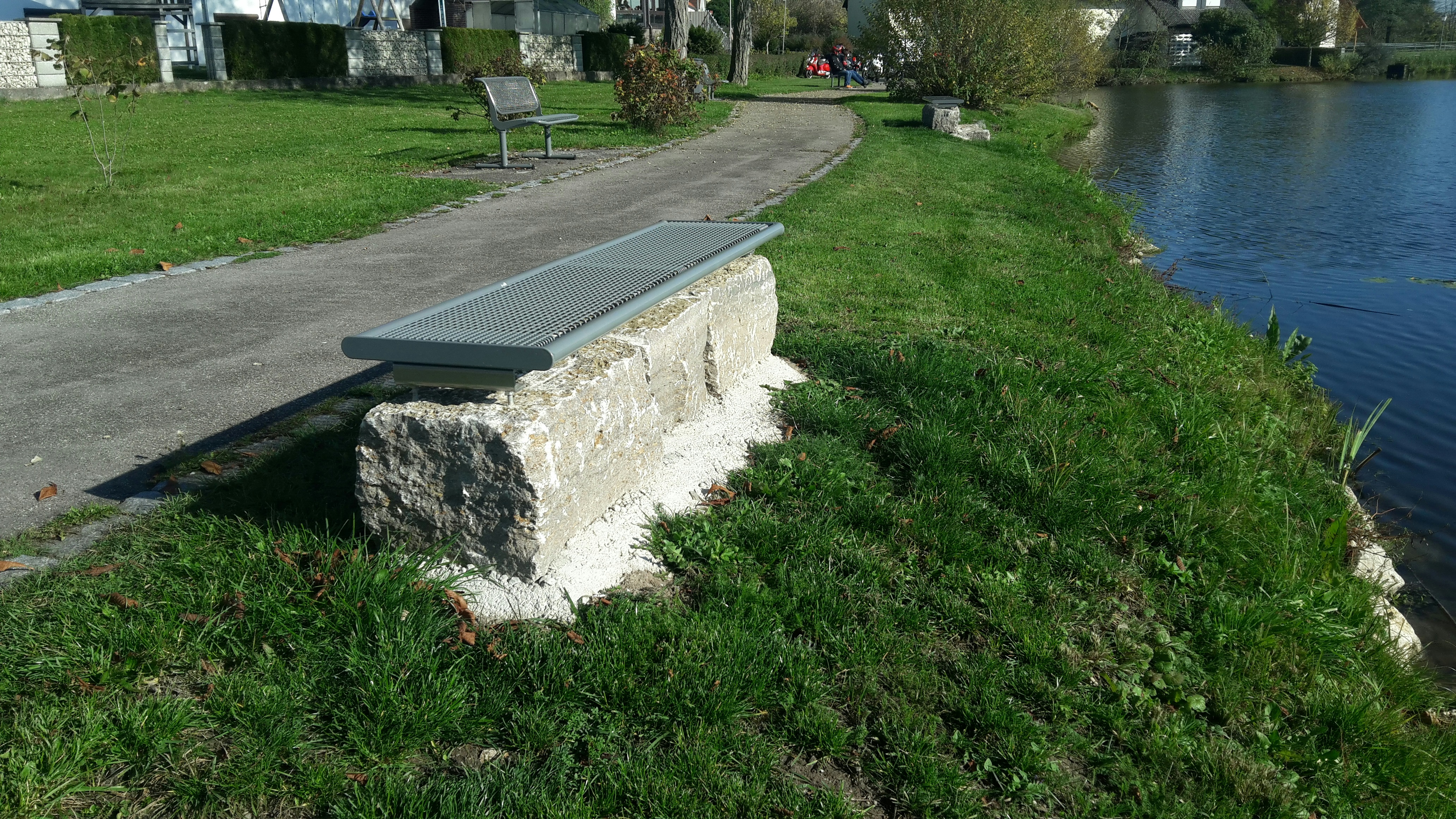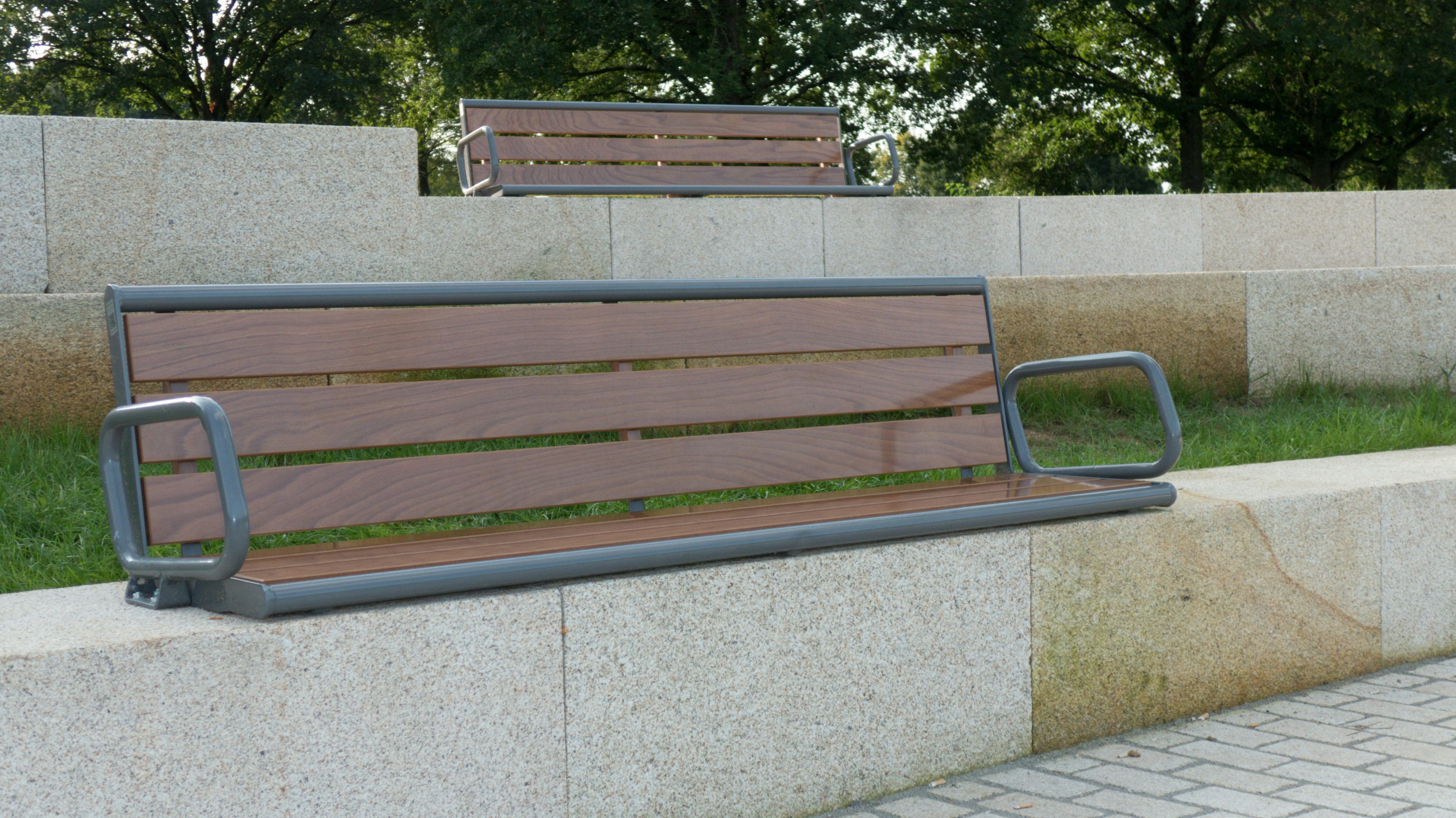 Im Münchner Projekt wurde das doppelsitzige Sitzteil "Style" mit einteiligem Drahtgitter-Einsatz gewählt, um den Betonsockel von beiden Seiten nutzbar zu machen. Insgesamt wurden dreizehn Sitzteile auf den Betonquadern verbaut, die nun das ganze Jahr über komfortable Sitzgelegenheiten bieten.