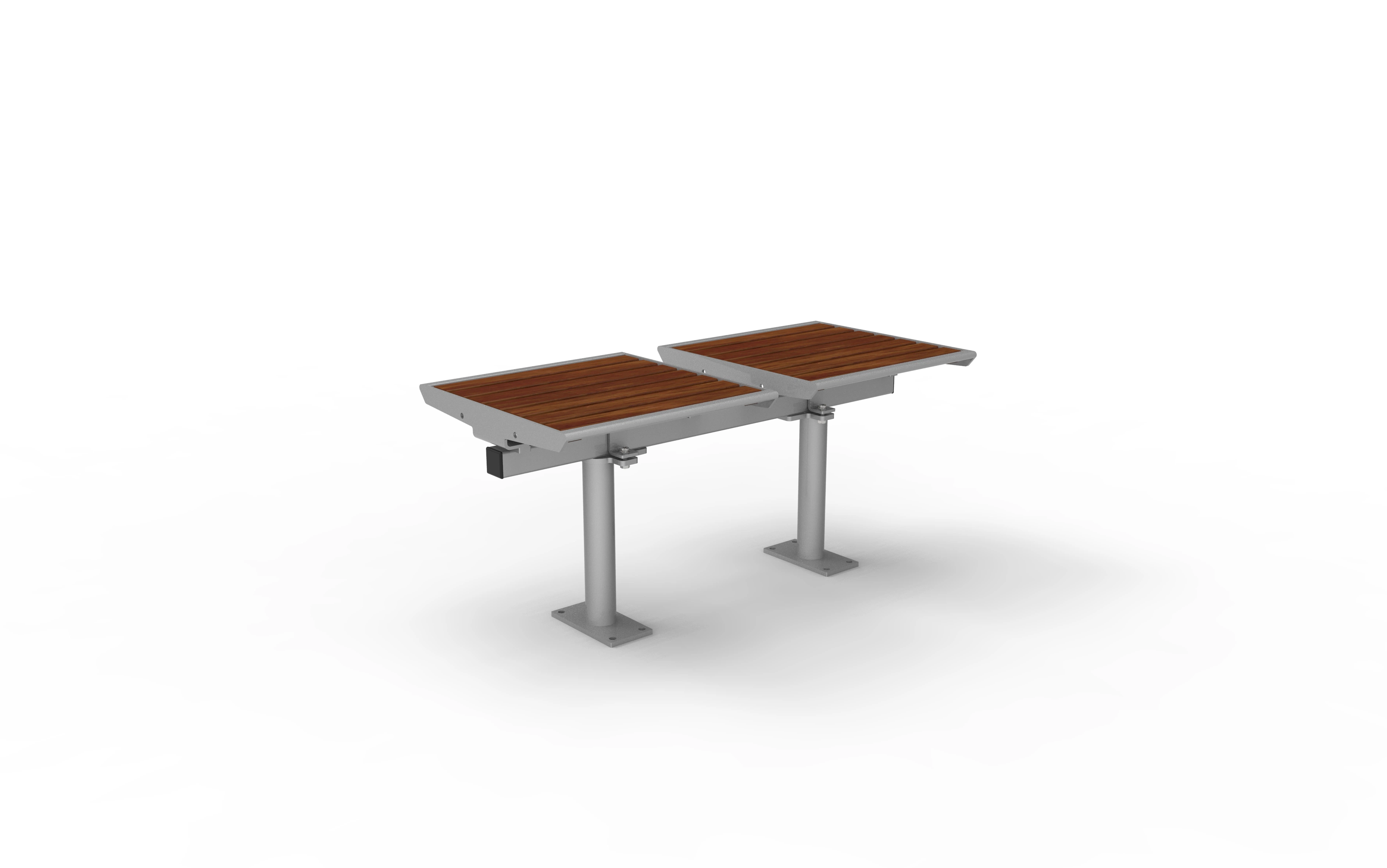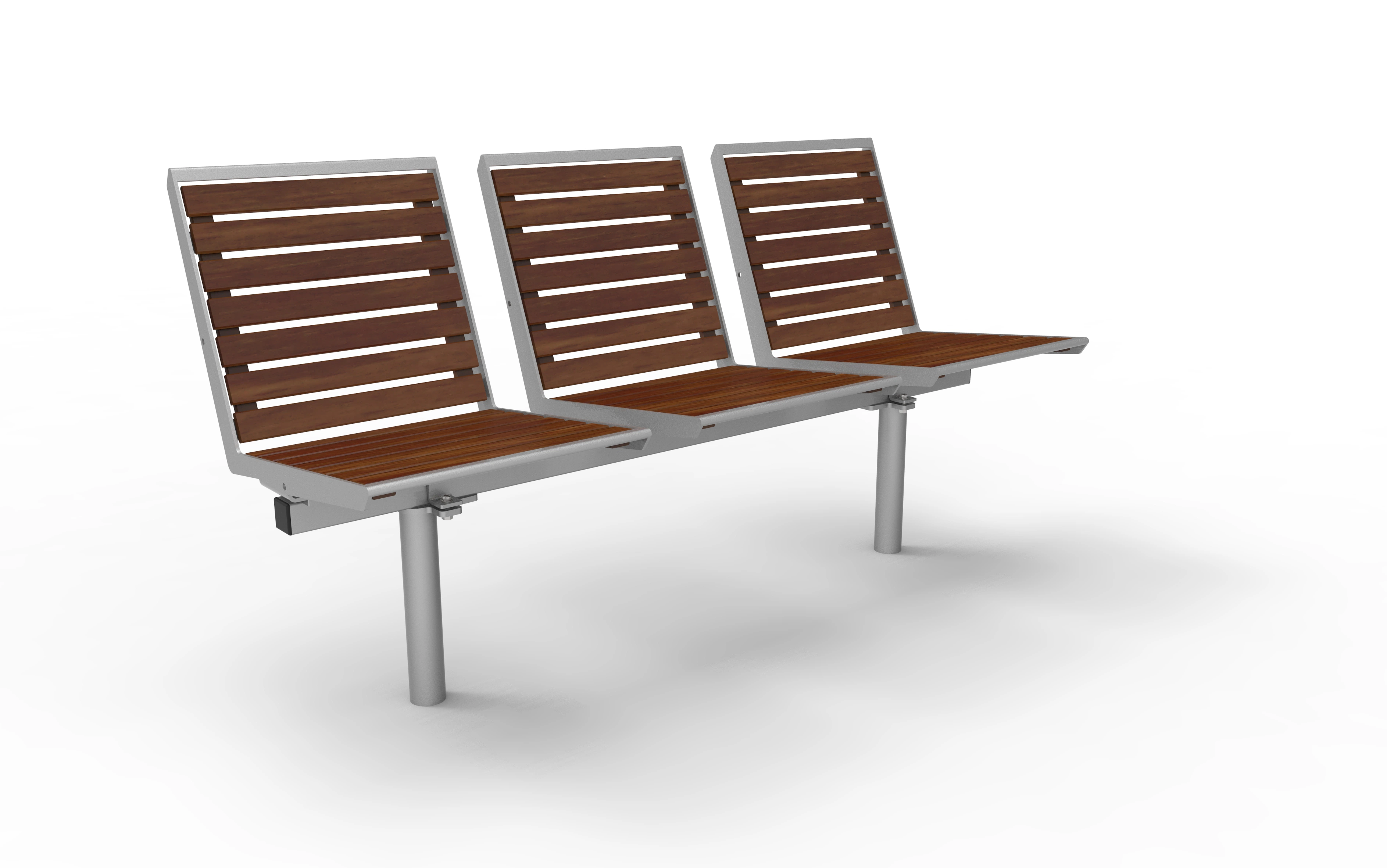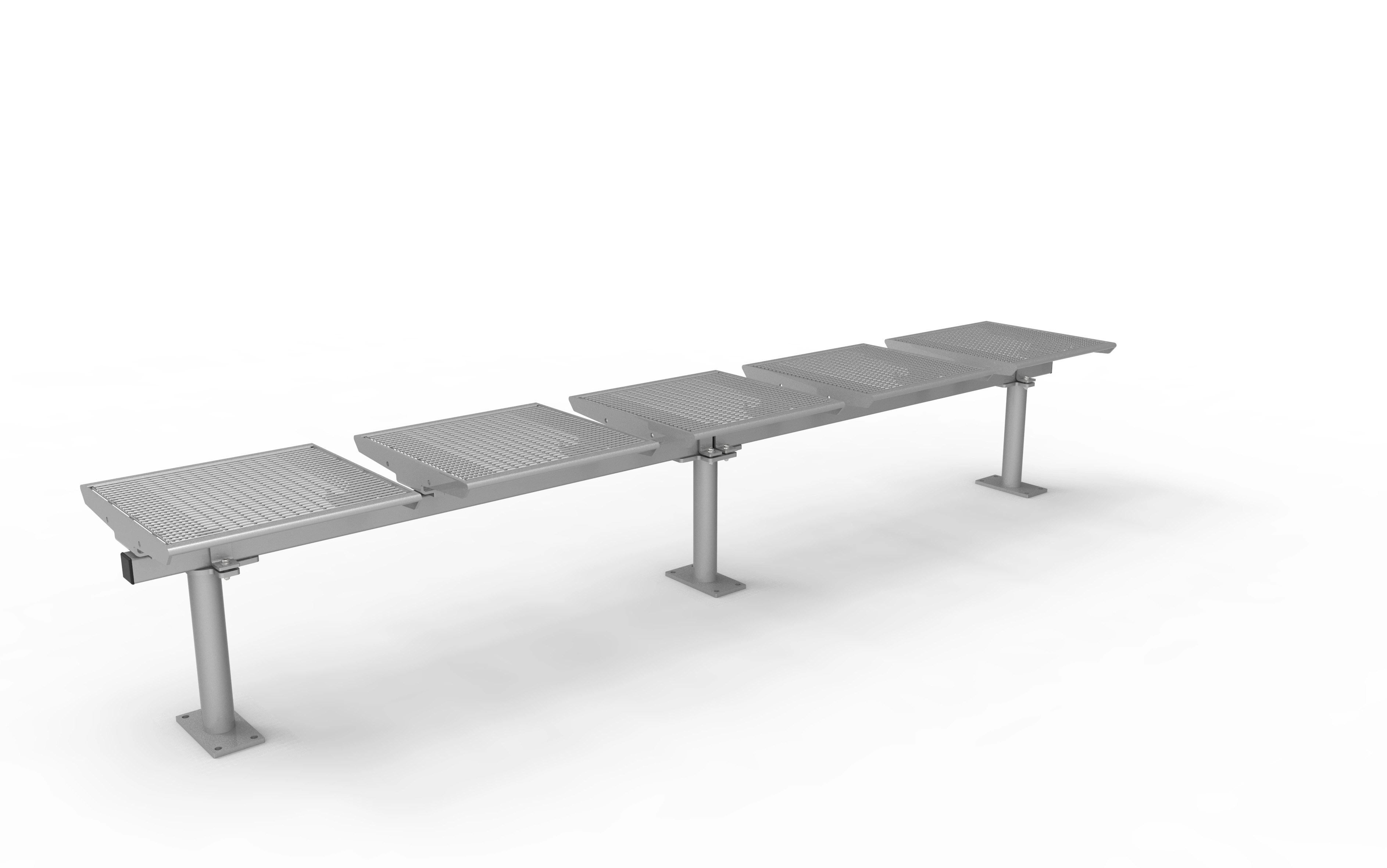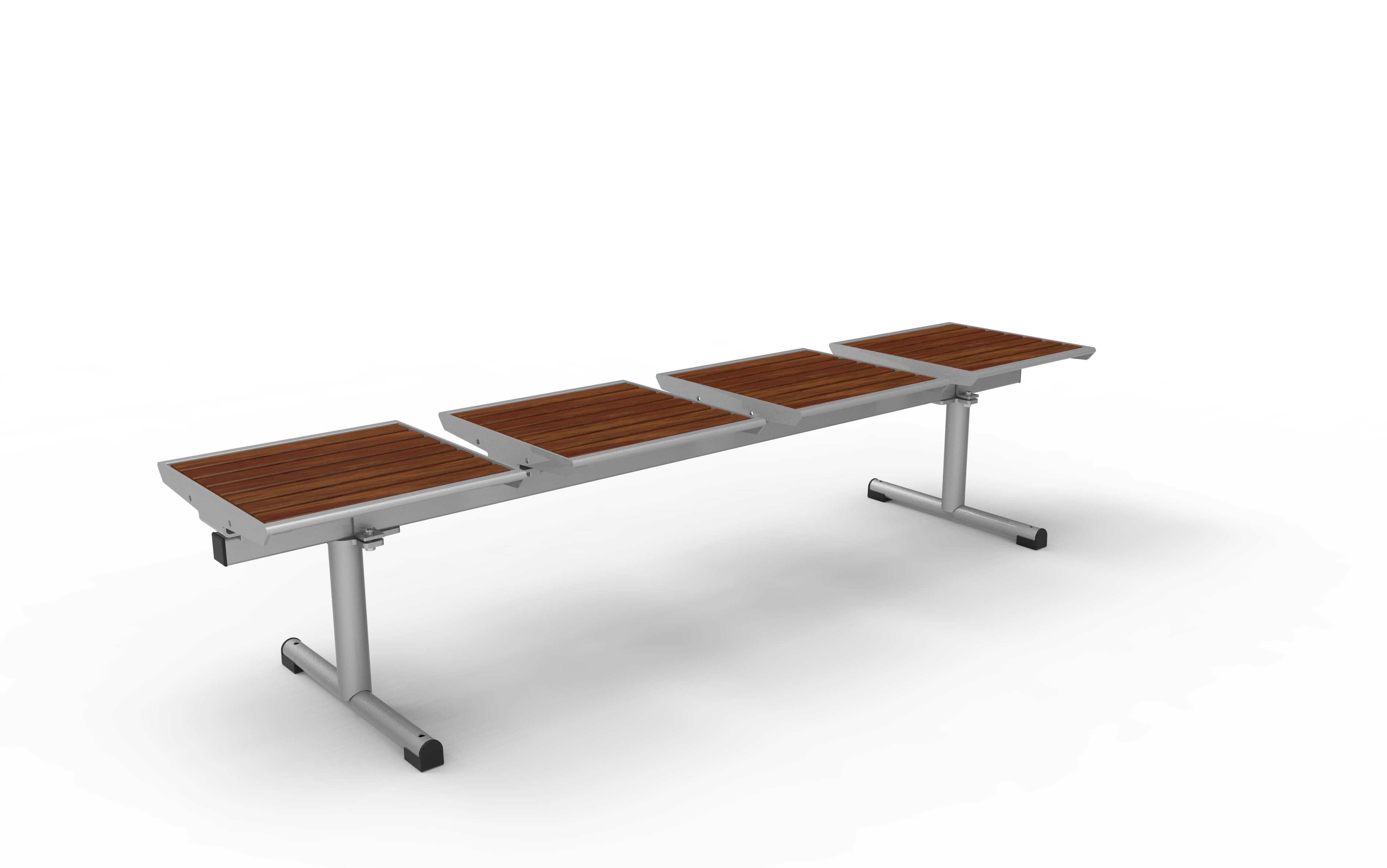 Dank der modularen Bauweise lassen sich die Zargen in 1- bis 4-sitziger Ausführung konfigurieren und bei Bedarf beliebig verlängern. Die Füße sind in drei Varianten erhältlich: mobil, ortsfest mit Bodenplatte oder ortsfest zum Einbetonieren – für maximale Flexibilität in der Planung und Umsetzung.